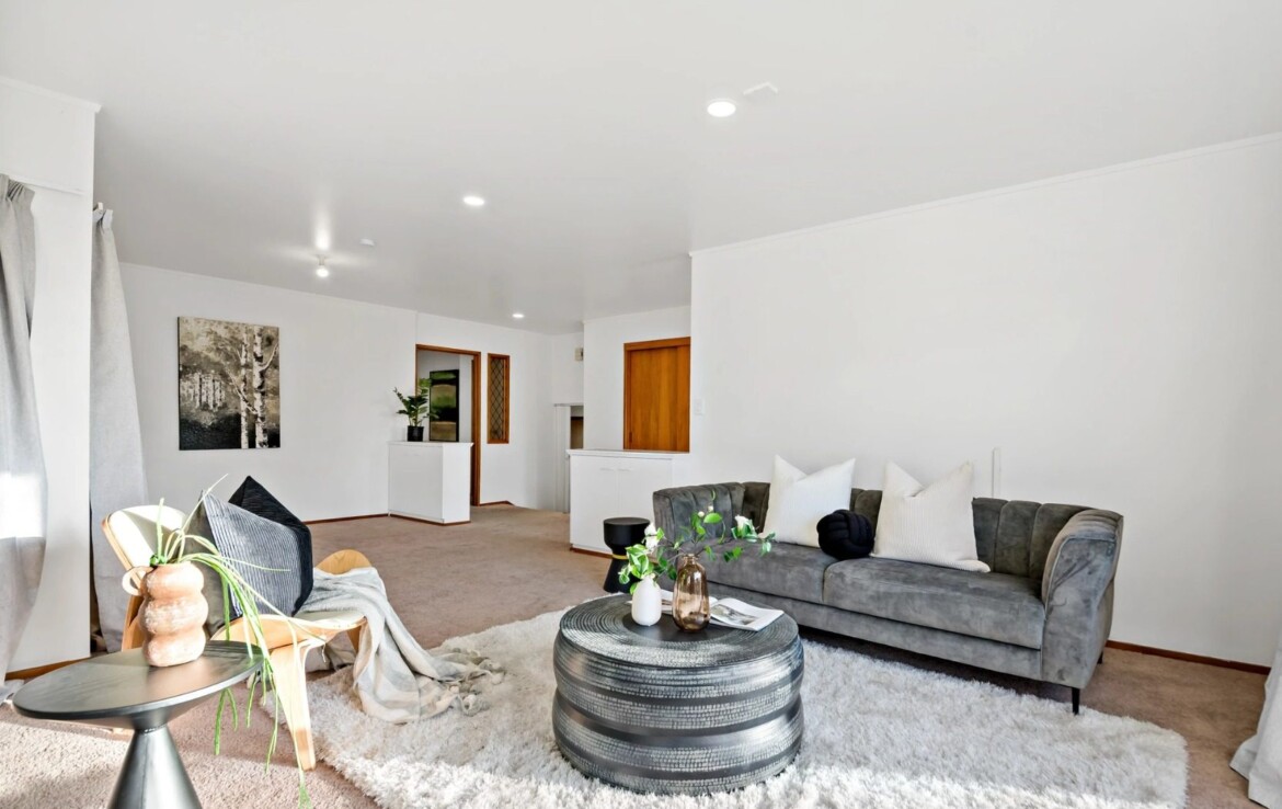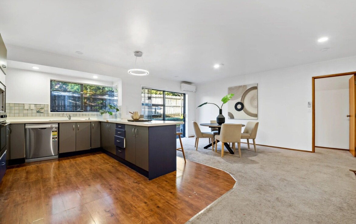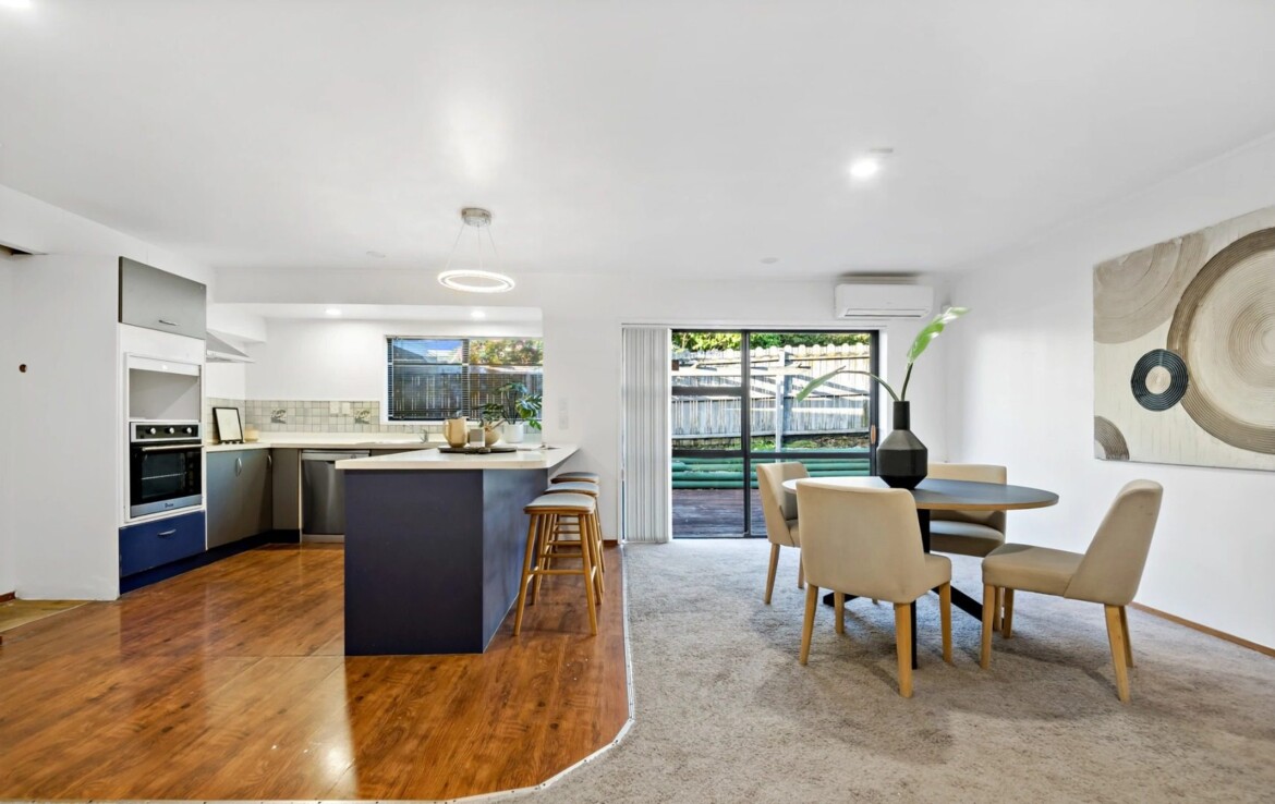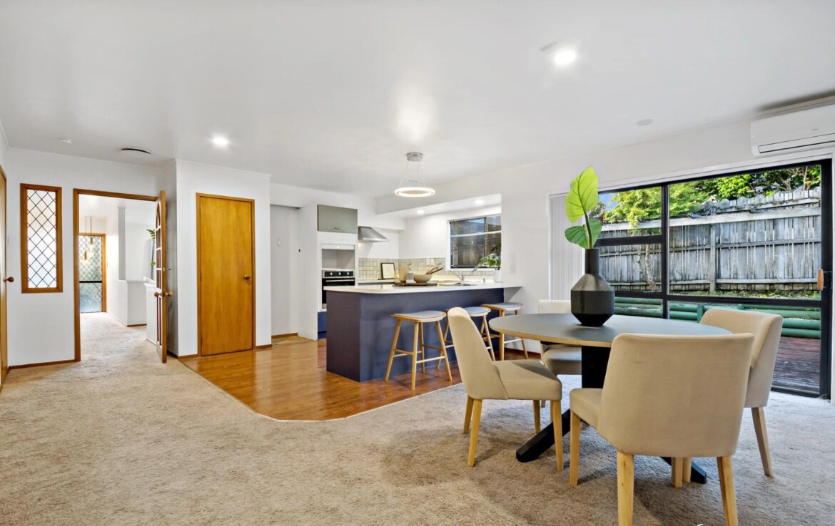 The spacious living area and separate dining room flow seamlessly into the well-appointed kitchen, creating an ideal space for family living and entertaining.